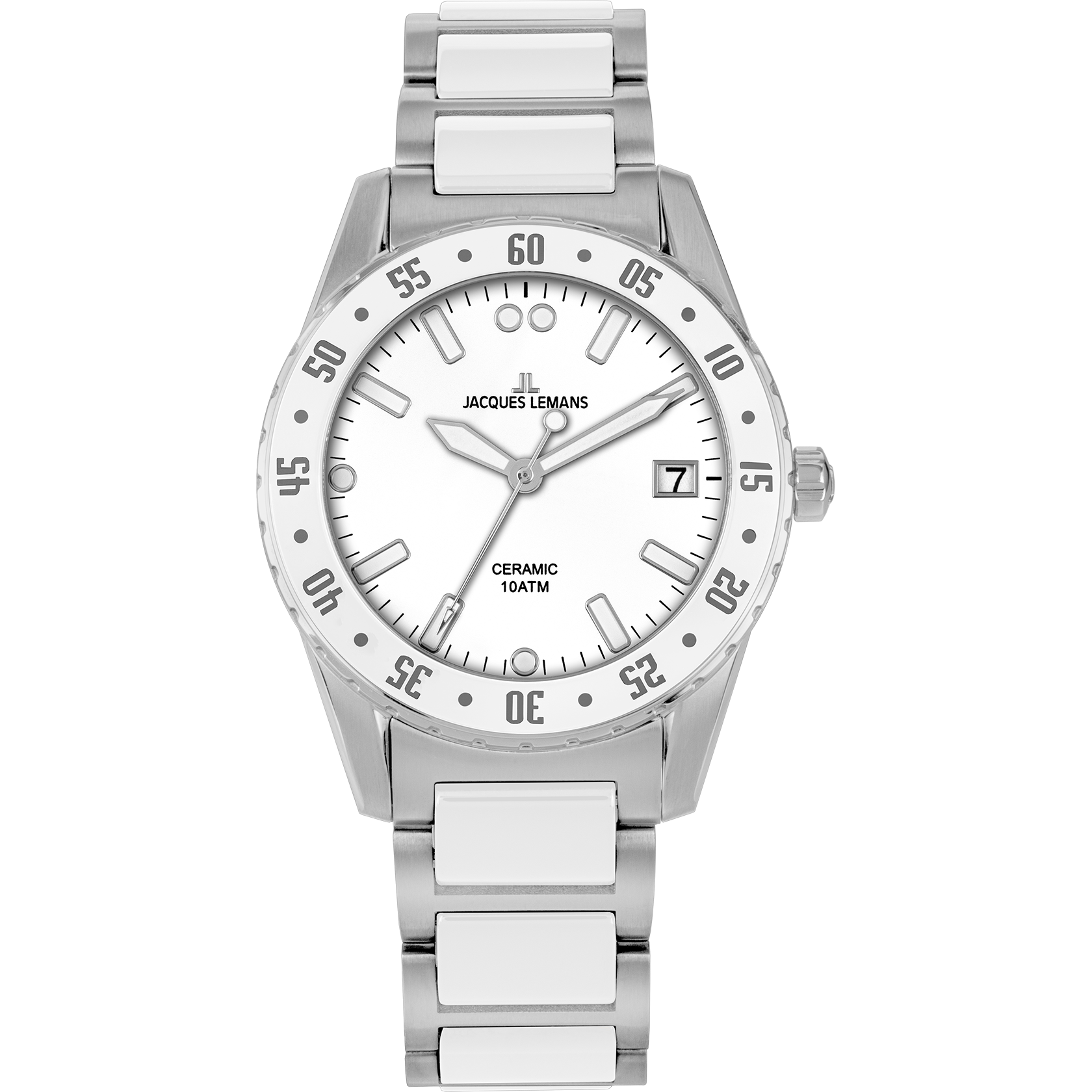 JACQUES LEMANS Damenuhr Liverpool Keramik Weiß 42-12J 10 ATM