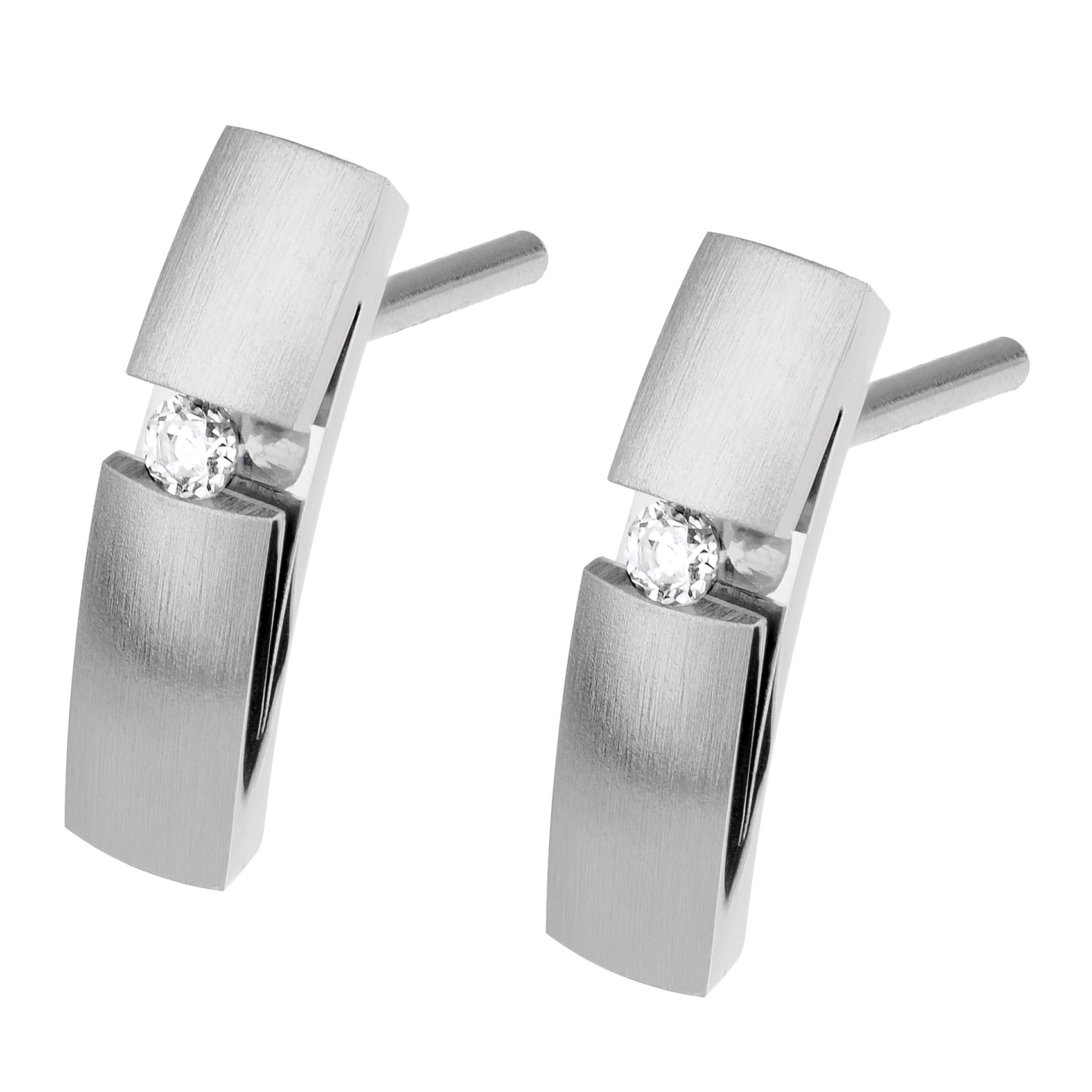 Die Ohrstecker sind aus hochwertigem, mattem Edelstahl gefertigt und mit kostbaren Brillanten verziert, die jedem Outfit einen Hauch von Glamour verleihen. Erleben Sie die Schönheit und das Funkeln dieses Ohrschmucks und lassen Sie sich von seinem Charme verzaubern.