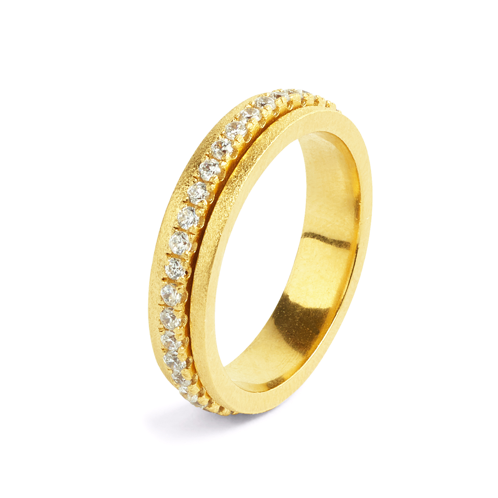Der Ring Turnaround ist nicht nur sehr dekorativ sondern macht auch einfach Spaß. Das glitzernde Band aus dicht gefassten Zirkonia ist beweglich auf der Grundschiene angebracht und lässt sich leicht drehen. Klassisches Design und technische Raffinesse regen das innere Kind an, bringen Freude und zaubern ein Lächeln auf jedes Gesicht. Ein zarter Rahmen mit funkelnden Zirkoniasteinen verleiht den Schmuckstücken der Designlinie Sparkling Frame einen eleganten, modernen Look. Die von Bernd Wolf gestalteten zeitlose Designs bilden mit ihrer klaren Formensprache ein perfektes und spannungsvolles Wechselspiel von geometrische Grundformen.