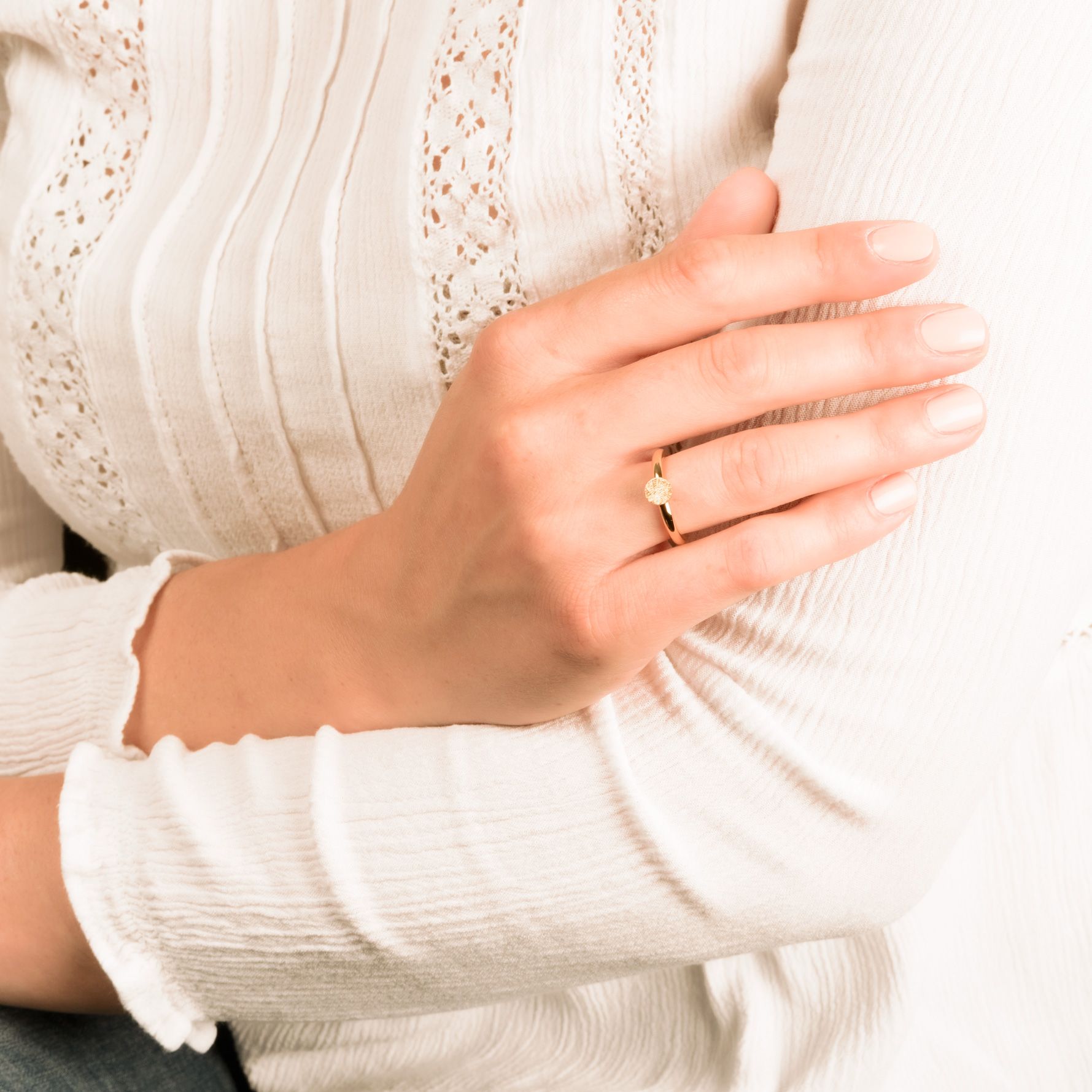 Der moderne Ring der evia-Kollektion ist aus hochwertigem, Gelbgold beschichtetem Edelstahl gefertigt und mit einer polierten Oberfläche veredelt. Der Ringkopf ist mit einer gekratzten Oberfläche veredelt. Er kann allein oder mit anderen Ringen aus der evia-Kollektion kombiniert werden.