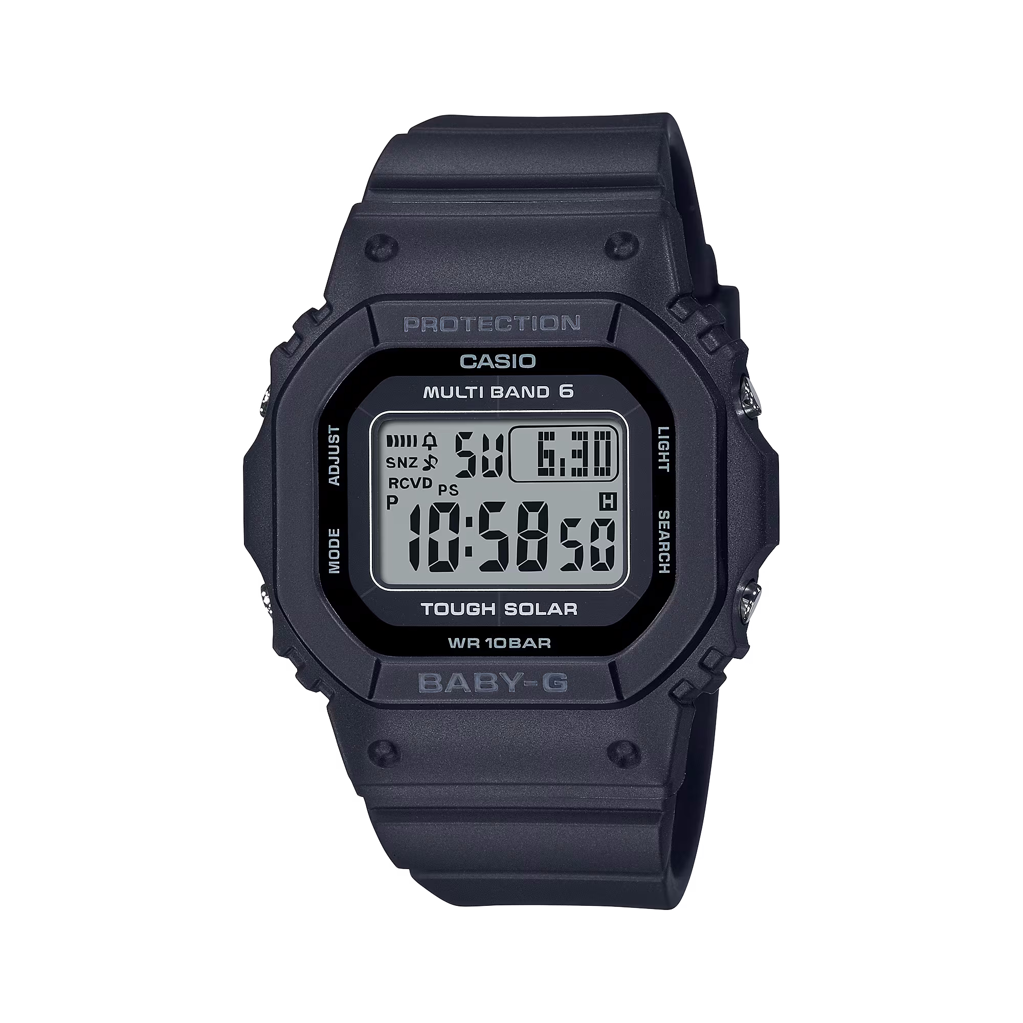 Der klassische, quadratische Look der BABY-G, den alle lieben – eine kompakte, lässige Uhr für dein aktives Leben. Das kleinere BGD-5650-Gehäuse ist 2,6 mm kürzer, 2,1 mm schmaler und 1,2 mm flacher als sein Vorgänger, die BGD-5000. Diese Uhren bieten Funktionalität in jeder Hinsicht. Dank der Tough Solar Funktion versorgt sie sich nachhaltig mit Energie und die Funktechnologie sorgt für exakte Zeit in sechs Regionen der Welt, damit Sie immer pünktlich sind, egal, wo Sie sich befinden. Sie ist außerdem bis 10 Bar wasserdicht. Diese Baby-G ist ein ideales Accessoire für jede Jahreszeit und jeden Modestil.