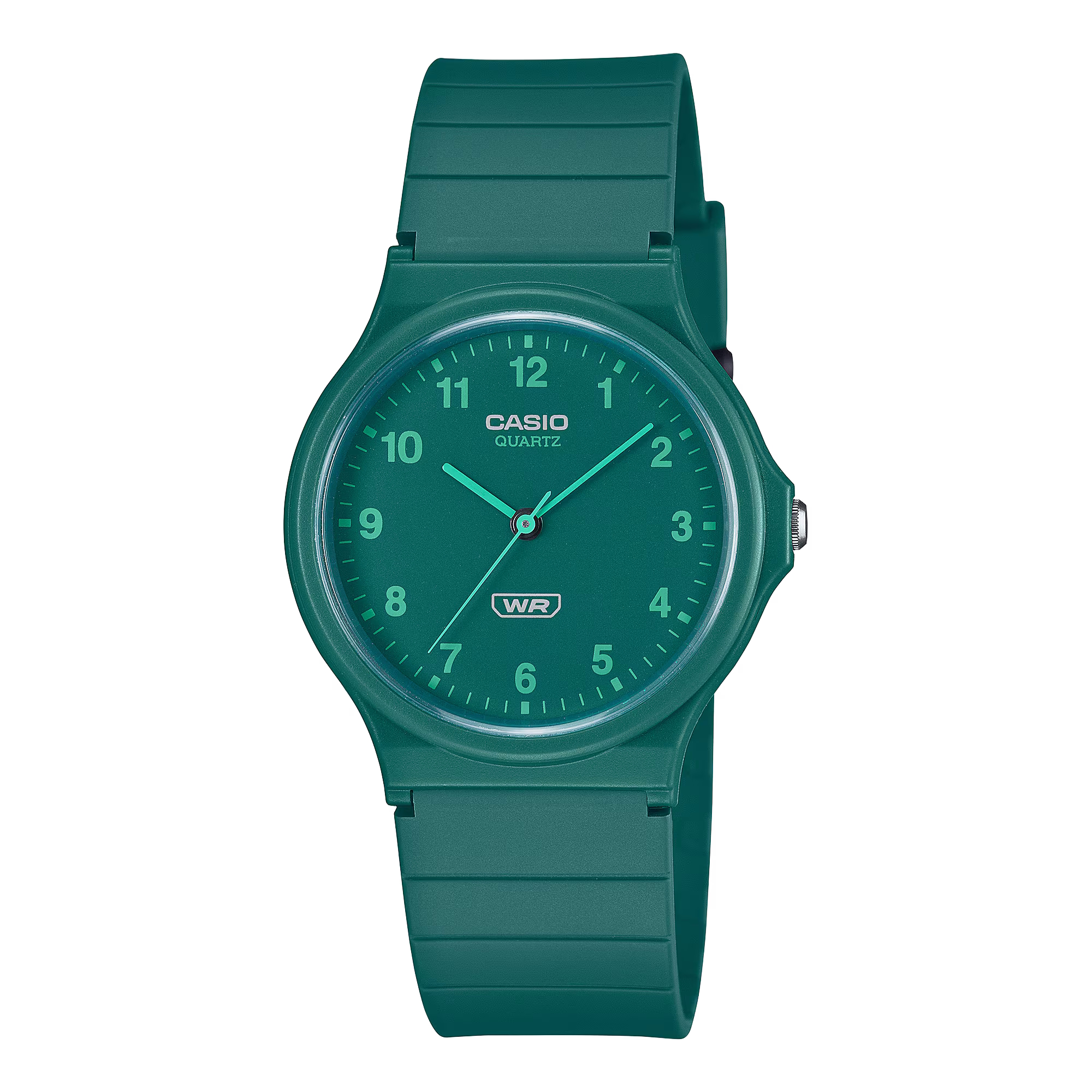 Der Bestseller MQ-24 ist wieder da und wird jetzt aus umweltfreundlicheren Materialien hergestellt.. Das Design der Stunden-, Minuten- und Sekundenzeiger ist schlicht gehalten und in unterschiedlichen monochromen Farbgebungen. Der schlanke, minimalistischen Look ist das perfekte Accessoire für Groß und Klein. Das Band besteht aus biobasiertem Resin, das dazu beitragen soll, die Umweltbelastung zu verringern.