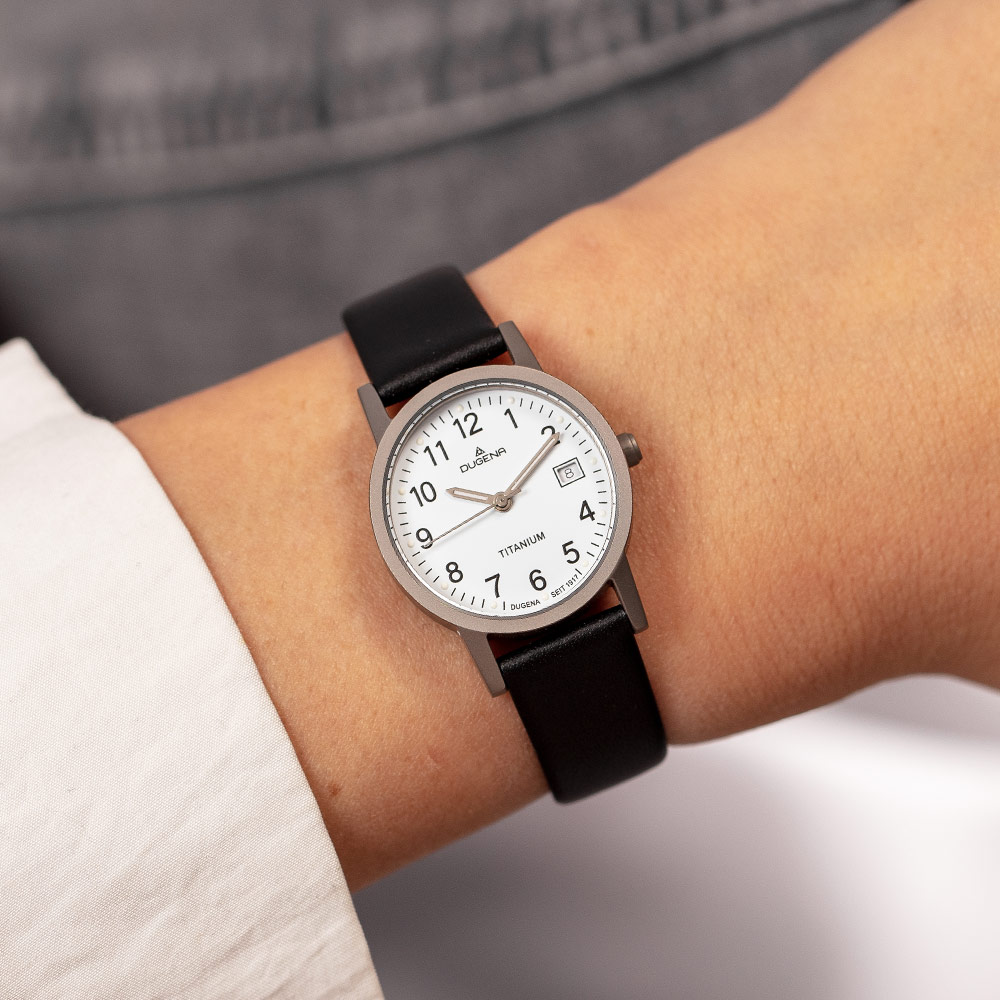 Eine traditionsreiche Unternehmensgeschichte, unaufdringliche Eleganz, ein technisch ausgefeiltes Innenleben – das alles charakterisiert DUGENA-Damen-Armbanduhren zu echten Besonderheiten, die jedes Outfit auf eine moderne Weise stilbewusst ergänzen! Auch die DUGENA Novum umfasst jene attraktiven, auf höchsten Uhrmacher-Standards fußenden Merkmale. So unterstreicht eine Zenit die von vielen Uhrenliebhabern geschätzten und DUGENA-typischen Komponenten – etwa das mondäne Edelstahlgehäuse samt längenverstellbarem Lederarmband (mit Dornschließe), das für einen bequemen Tragekomfort sorgt.