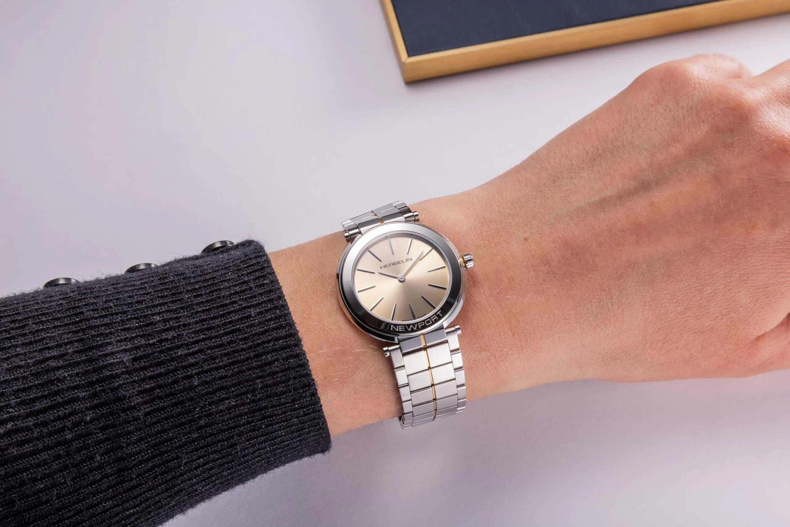 Die 2021 eingeführte Linie NEWPORT SLIM erweitert das erfolgreiche Newport-Universum von HERBELIN um eine elegante, moderne und reduzierte Damenuhr. Mit ihrem klaren Design und der Konzentration auf das Wesentliche verkörpert die Newport Slim zeitlose Raffinesse – ideal für Frauen, die mit einem dezenten, stilvollen Statement überzeugen möchten.