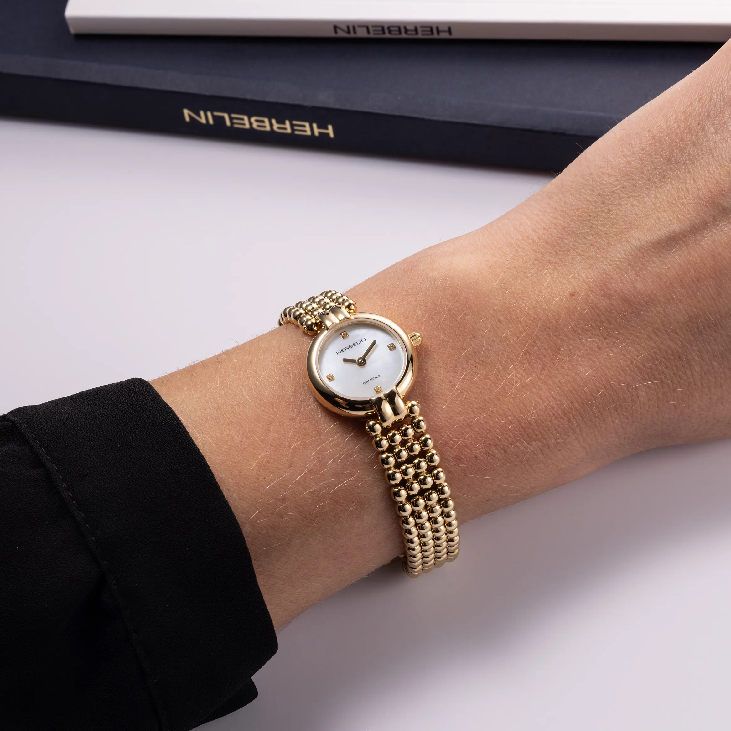 Seit vielen Jahren versteht sich HERBELIN auch auf die Kreation besonders stilvoller und femininer Damenschmuckbanduhren. Die PERLES ist ein wunderbares Beispiel für eine besonders stilvolle und feminin anmutenden Uhr, die sich auch zu glamourösen Anlässen und festlichen Kleidern problemlos kombinieren lässt.