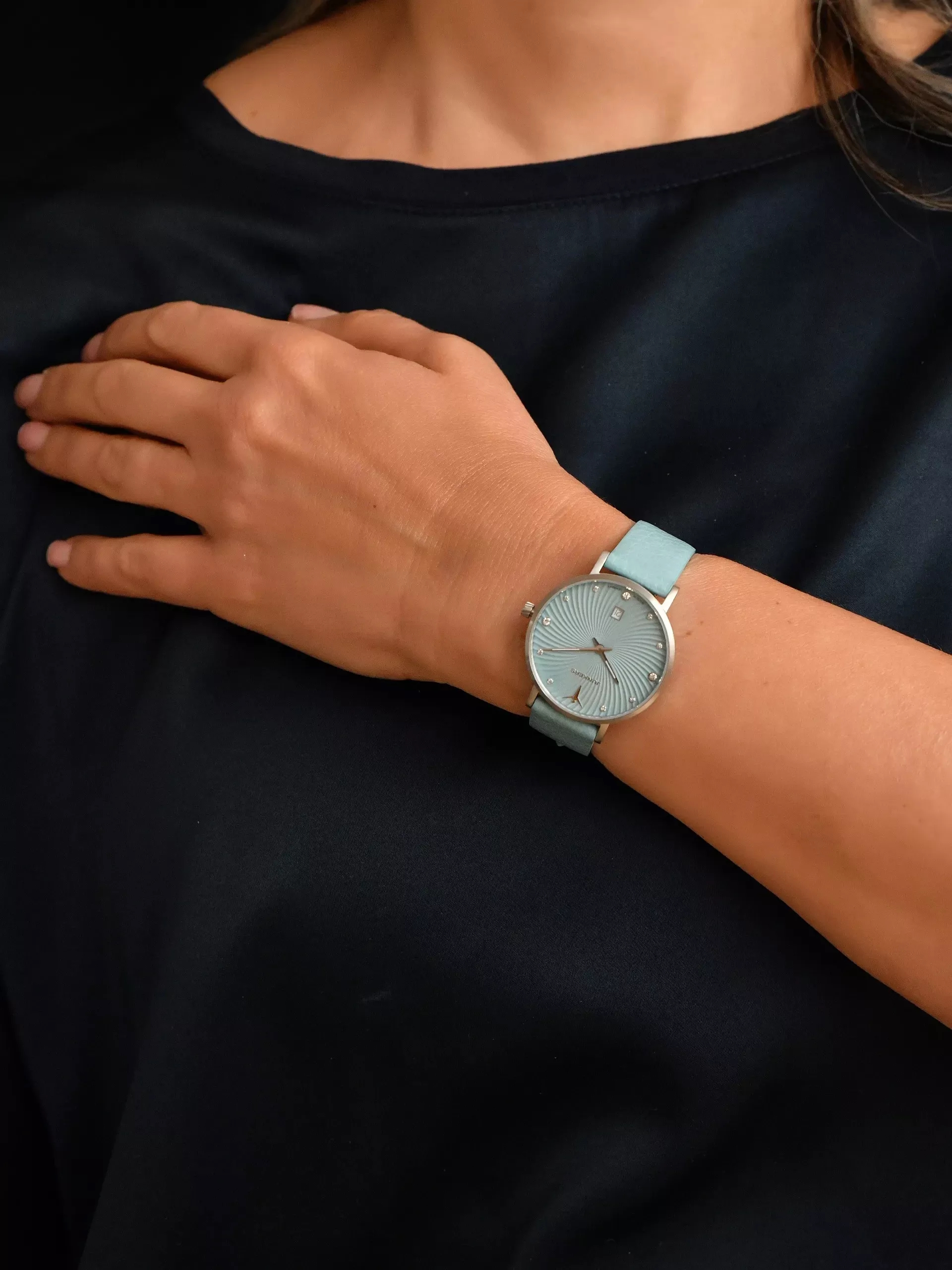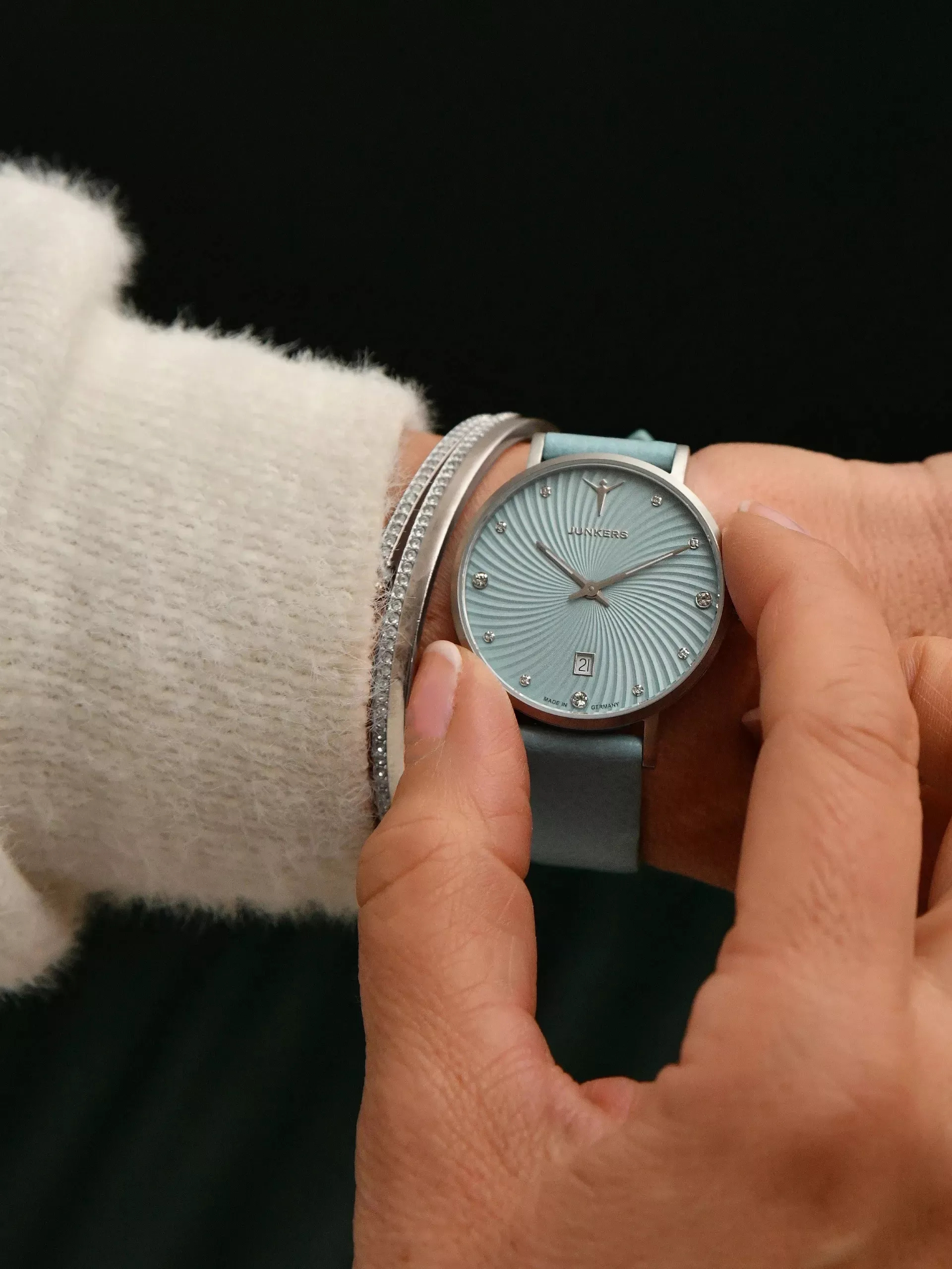 Junkers ANNELISE 34 Damenuhr 951.02.01 Lederarmband Blau