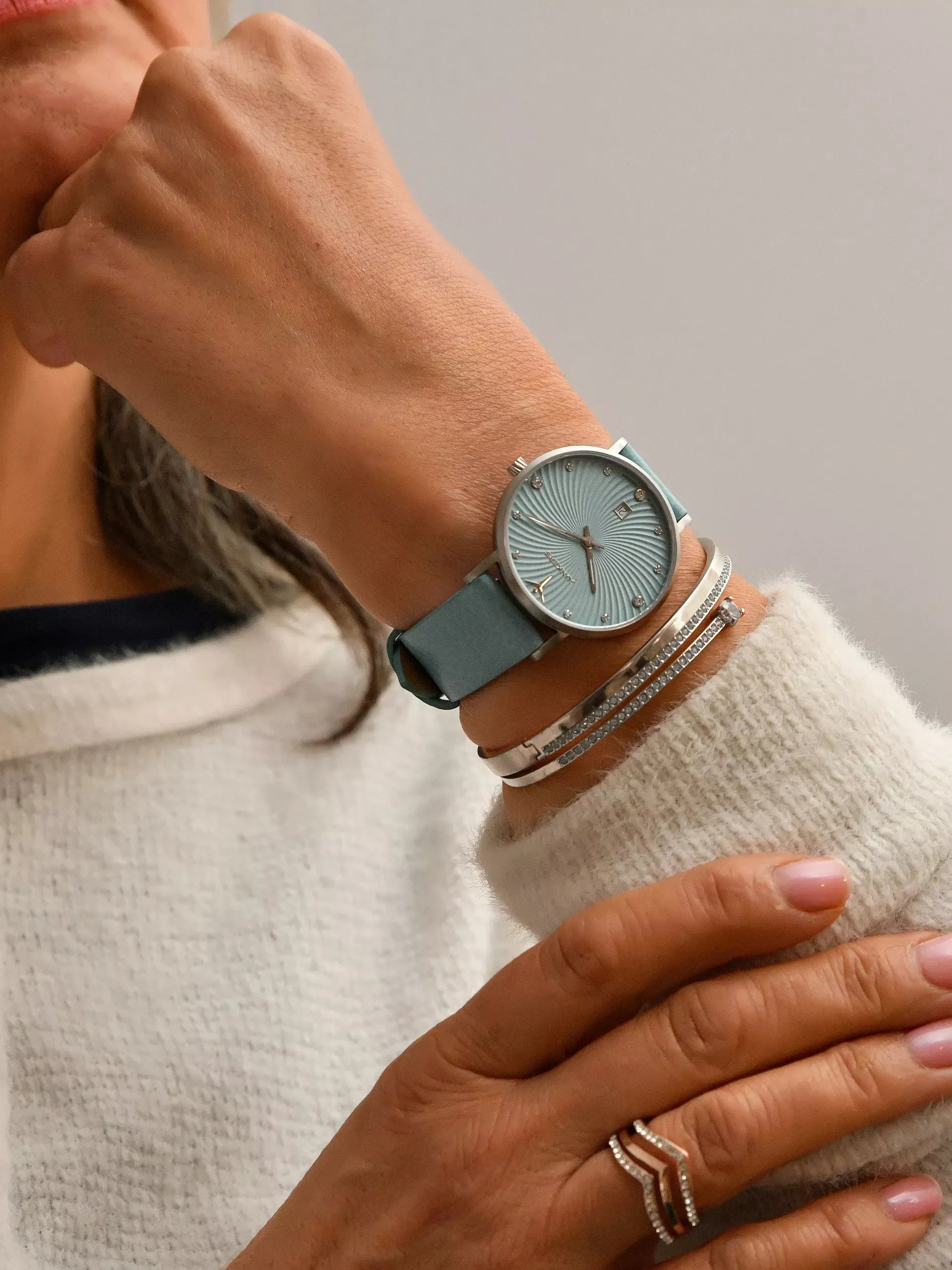 Dynamisches Wellenmuster für elegante Leichtigkeit am Handgelenk 34 mm Lederarmband Saphirglas Ref. 951.02.01