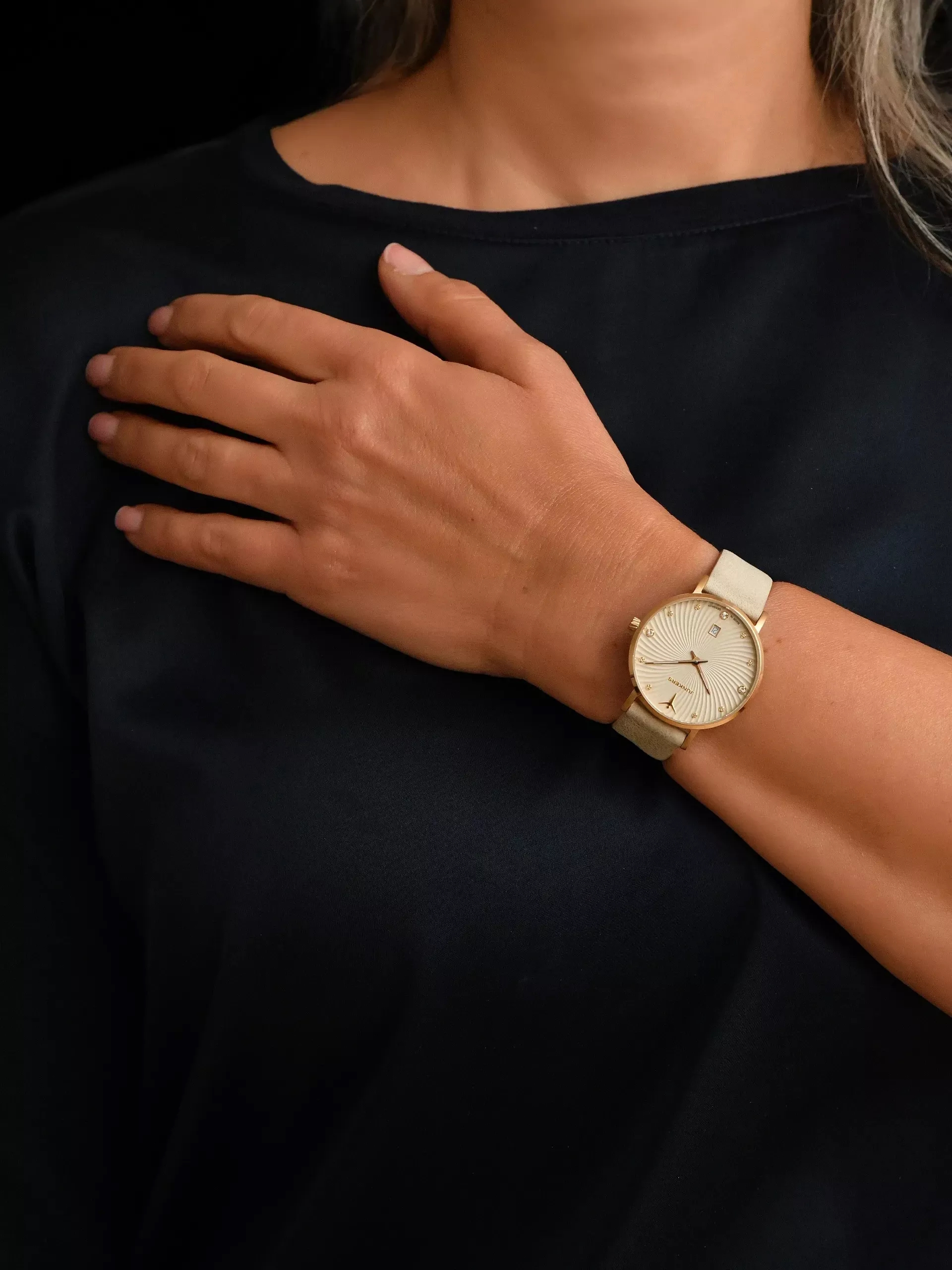 Junkers ANNELISE 34 Damenuhr 961.02.11 Lederarmband Beige