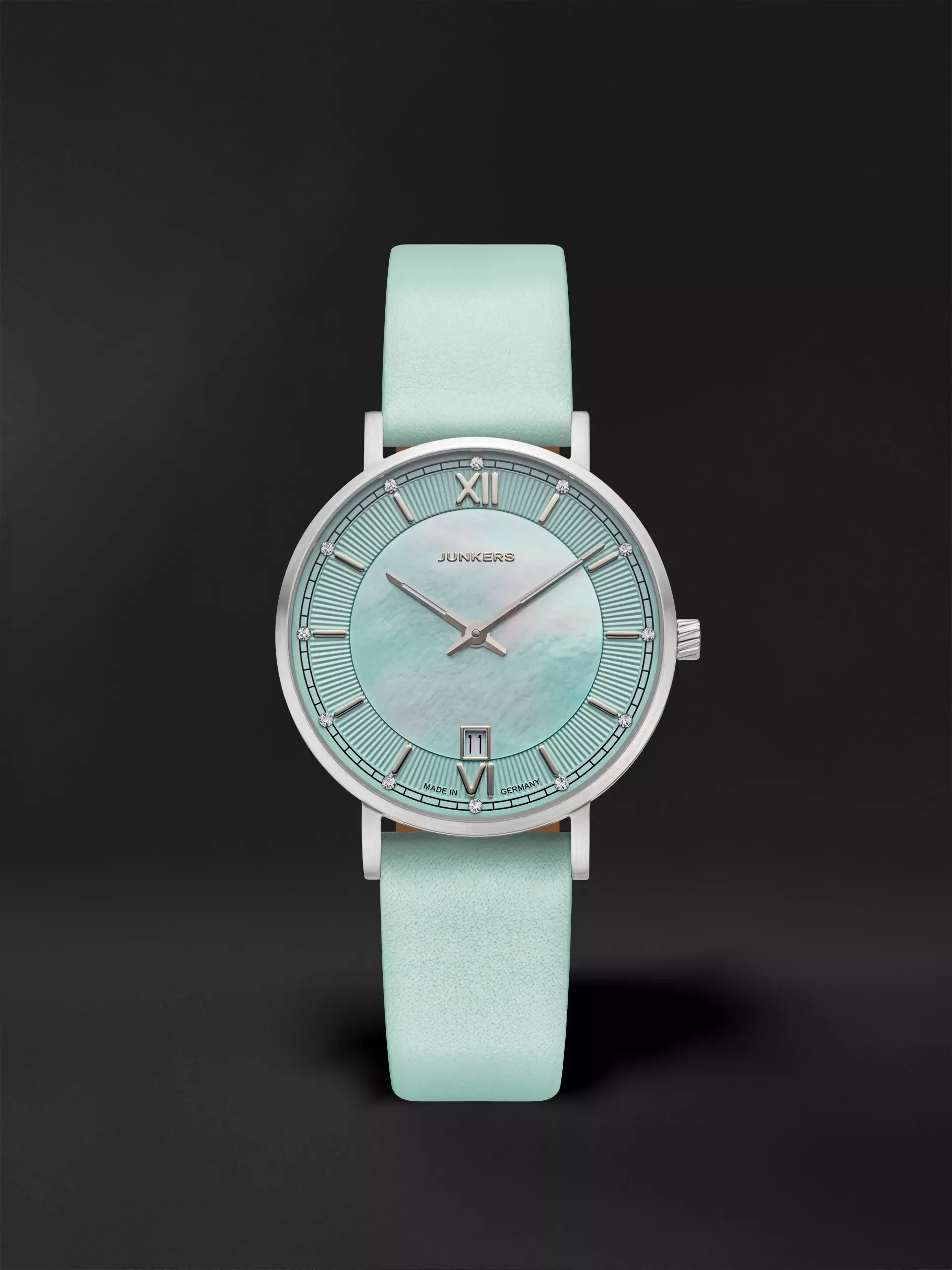 Junkers ANNELISE 34 Perlmutt Damenuhr 951.03.16 Lederarmband Grün