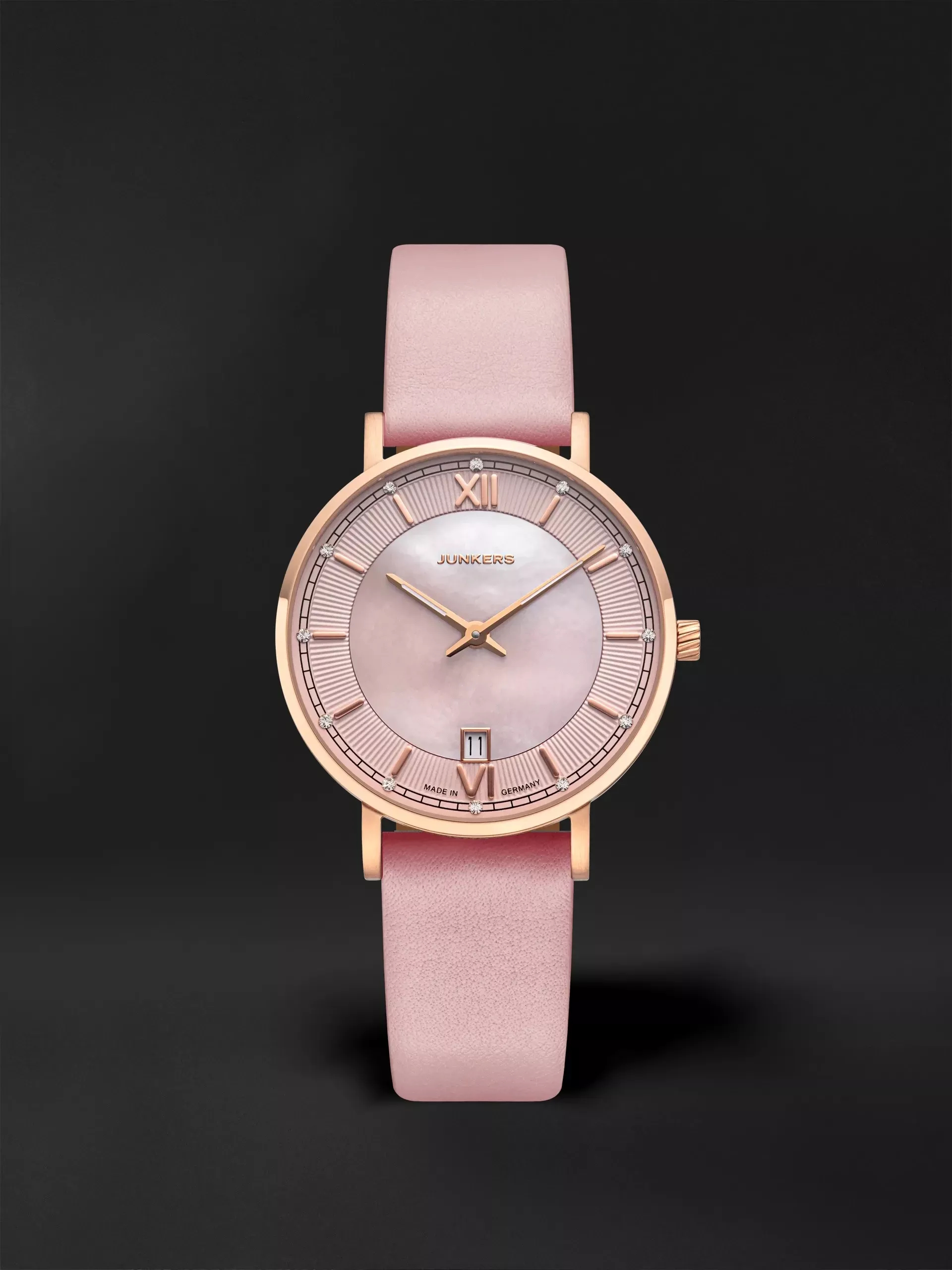 Junkers ANNELISE 34 Perlmutt Damenuhr 962.03.09 Lederarmband Rosa