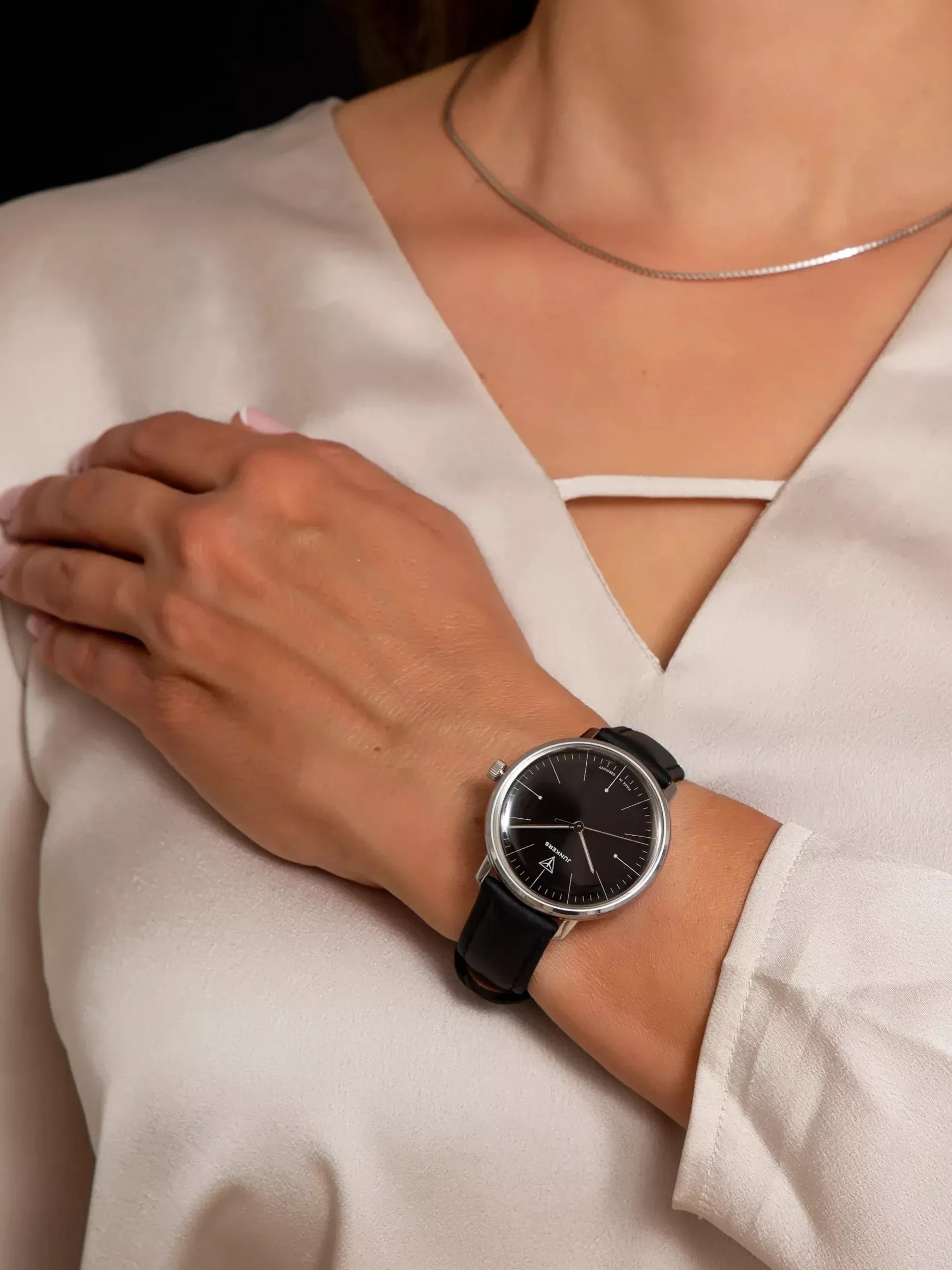 Designklassiker Farbe schwarz 38 mm Lederarmband gewölbtes Glas und Zifferblatt Ref. 906.01.02