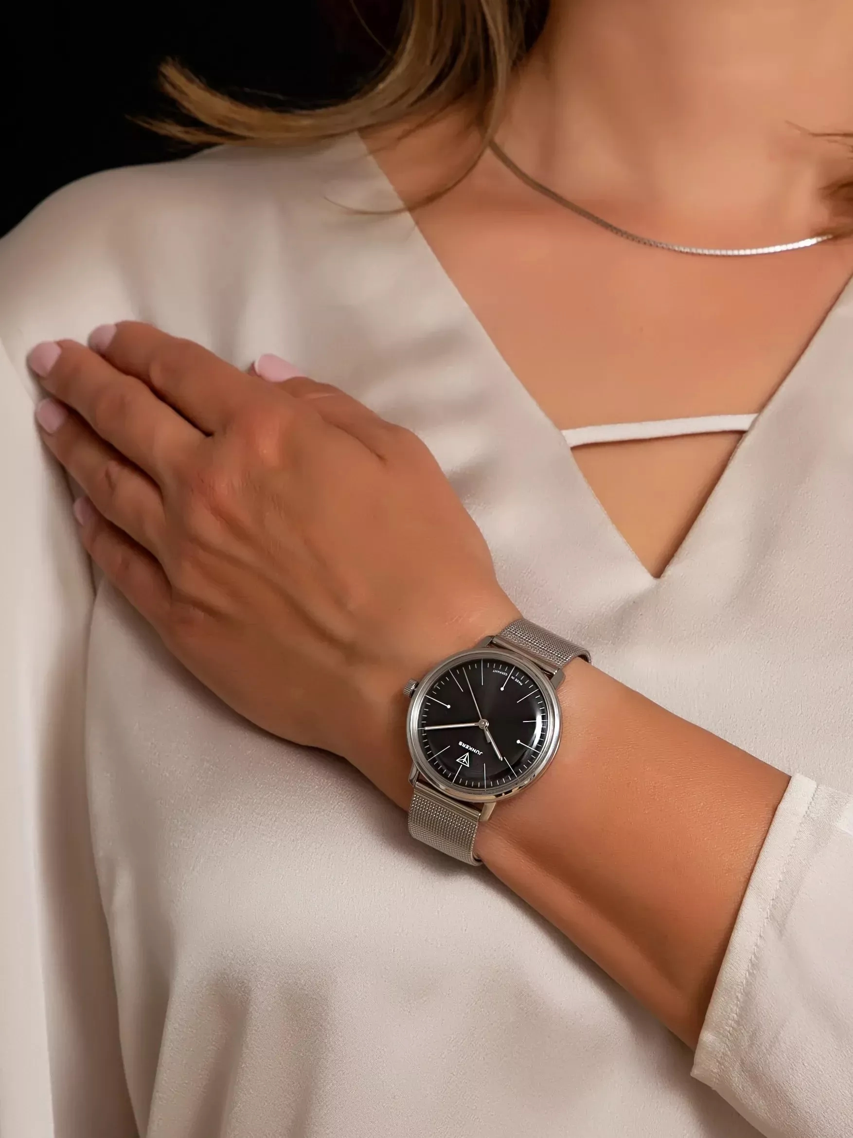 Designklassiker Farbe schwarz 38 mm Milanaise-Armband gewölbtes Glas und Zifferblatt Ref. 906.01.02