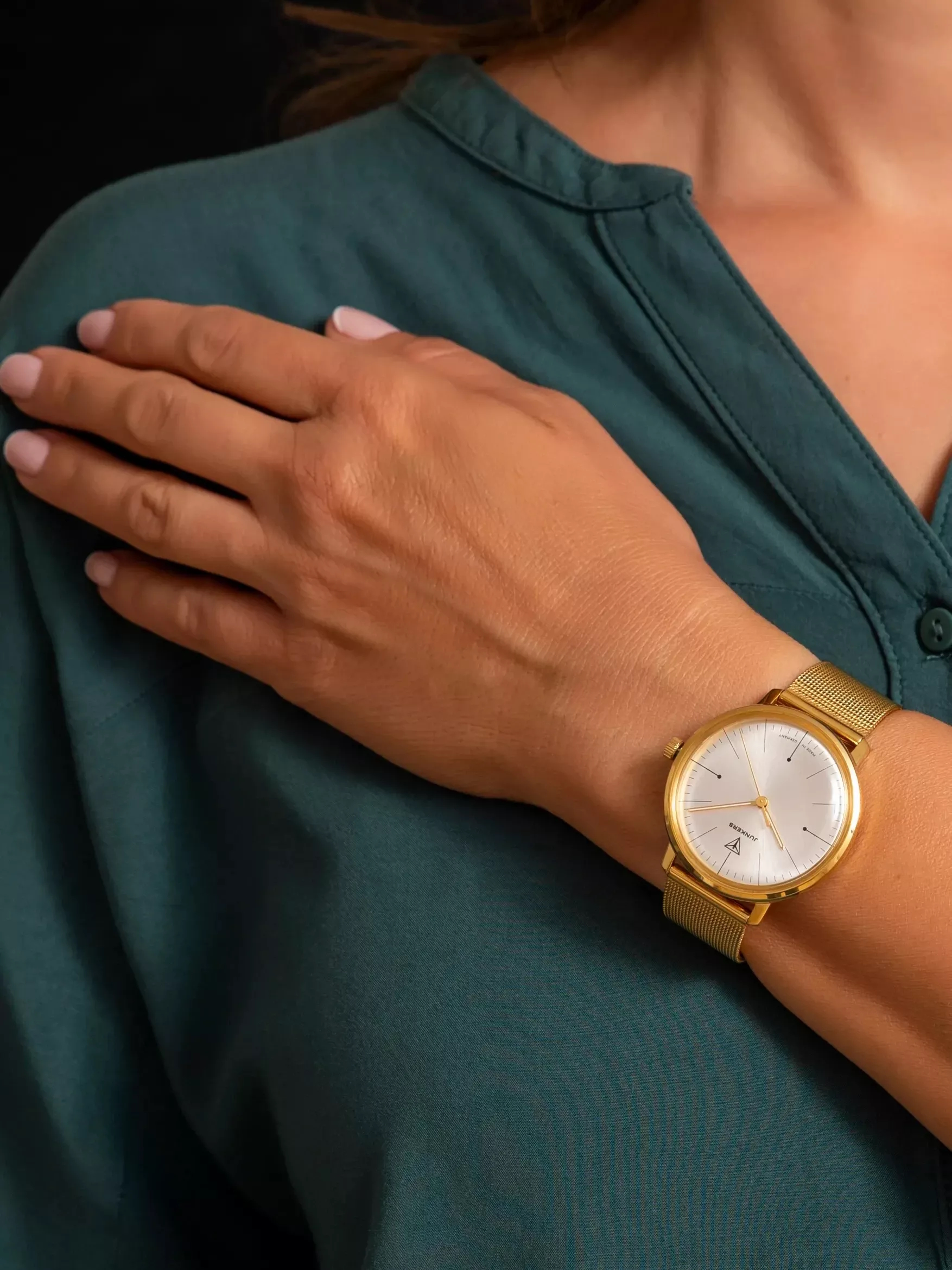 Designklassiker Farbe Silber 38 mm Milanaise-Armband gewölbtes Glas und Zifferblatt Ref. 907.01.03
