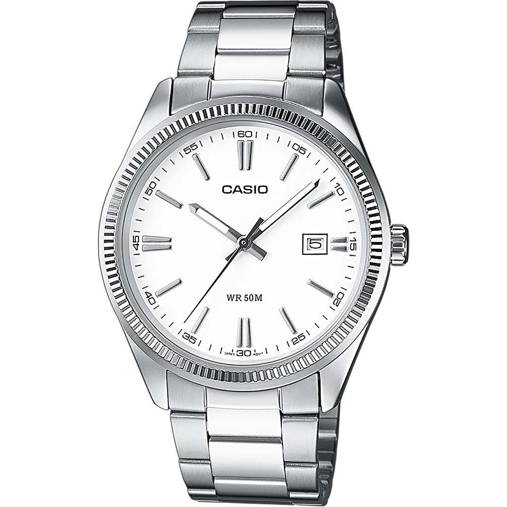 Casio Herrenuhr MTP-1302PD-7A1VEF Stahl. Messinggehäuse. Edelstahlband. Weißes Zifferblatt. Neonanzeige. Kalender. Tauchboot 50m. 2 Jahre Garantie. Ref. MTP-1302PD-7A1VEF