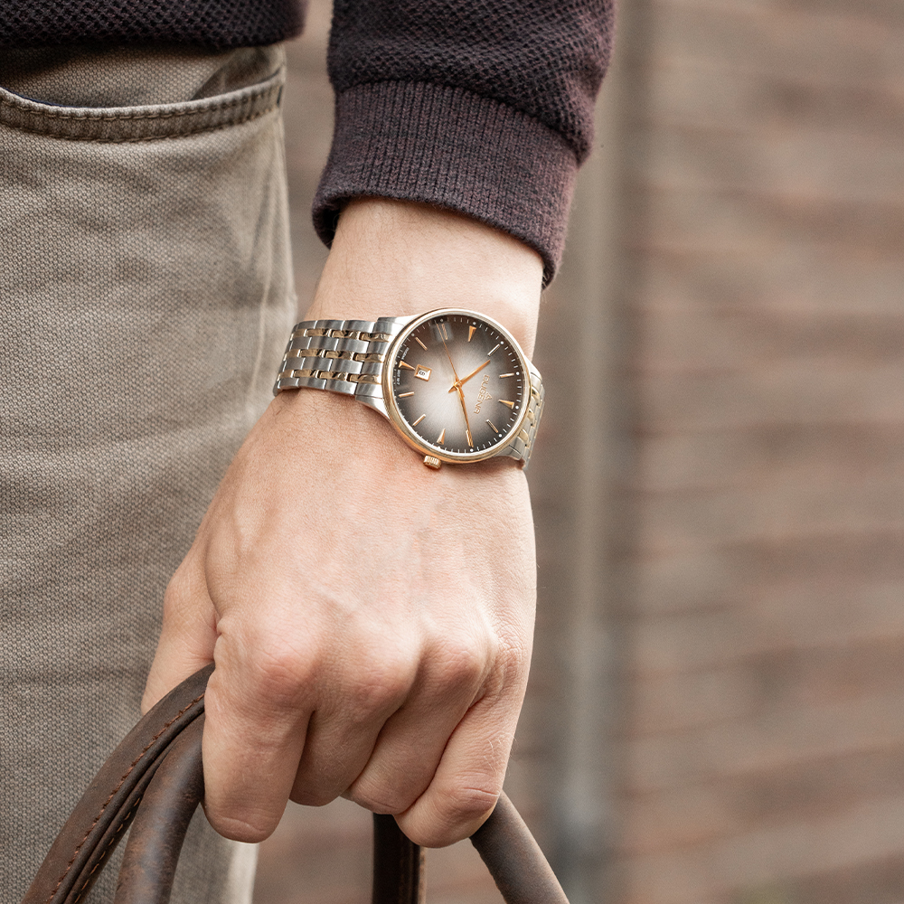 Robustes Mineralglas gibt den Blick frei auf das edle anthrazitfarbene Zifferblatt, das durch seine besondere Ästhetik besticht. Die neue DUGENA Grace ist nicht nur ein zuverlässiger Begleiter im Alltag, sondern auch ein stilvoller Hingucker für verschiedenste Anlässe.