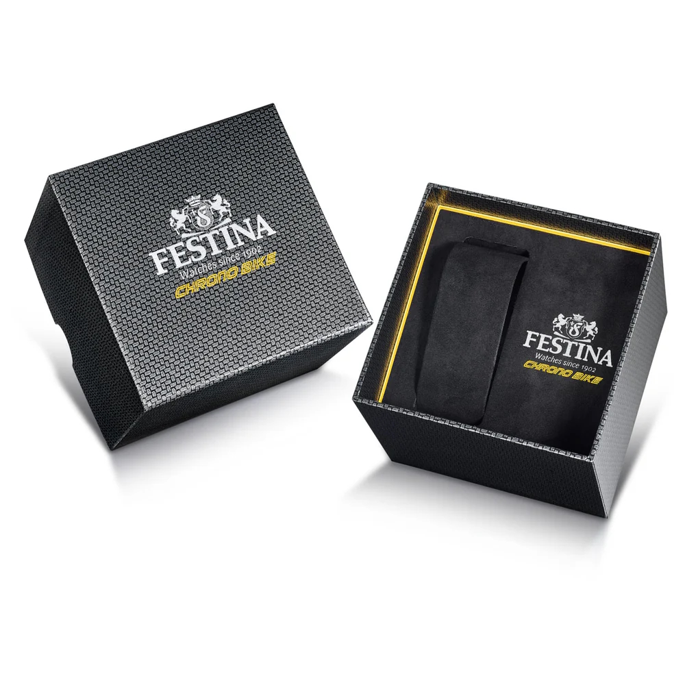 Festina präsentiert die ikonische Chrono Bike Kollektion, die am sehnlichsten erwartete und dank ihrer hochwertigen Materialien, prestigeträchtigen Oberflächen und Verweise auf die Welt des Radsports, von den Fans am meisten geschätzte Kollektion. Sie besticht durch den großen Charakter ihrer Linie: Eine große Auswahl an Zifferblattfarben kombiniert mit matten und glänzenden Details, verpackt in einem sportlichen Look.