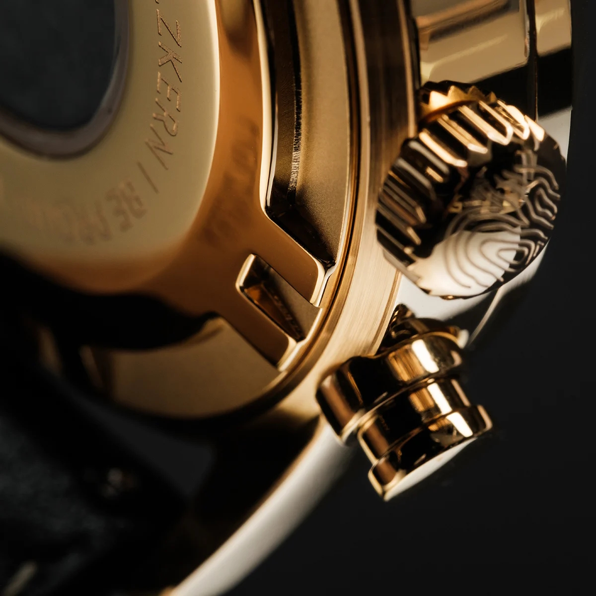 - Gehäuse: Durchmesser 43mm, gefertigt aus Edelstahl in Gold