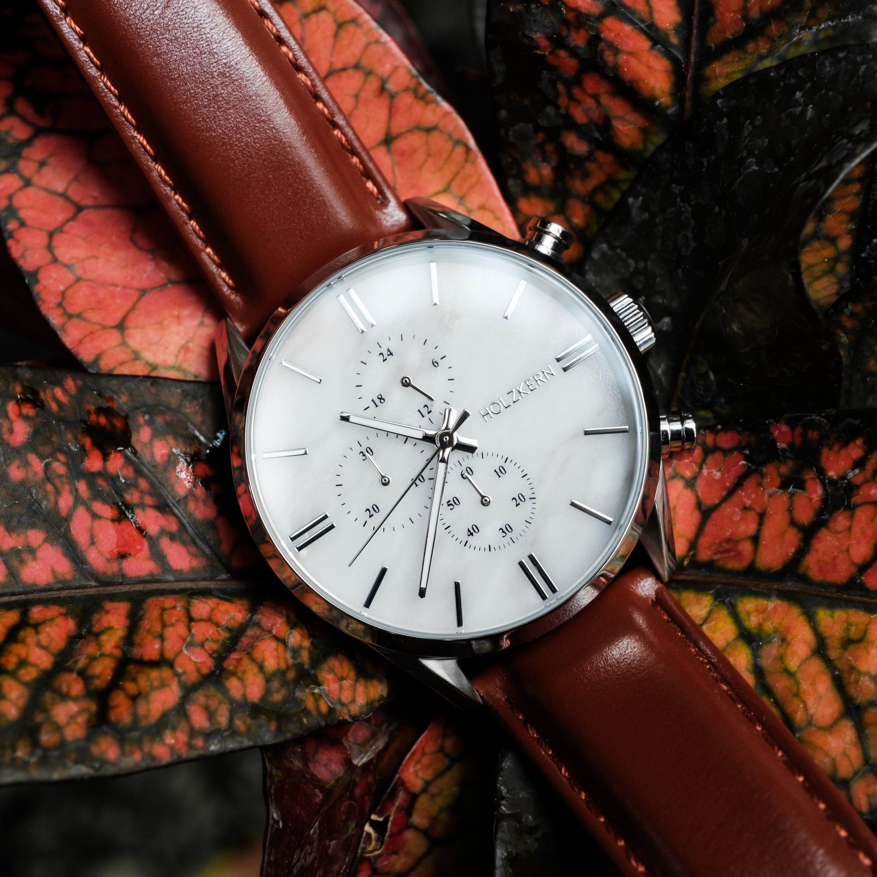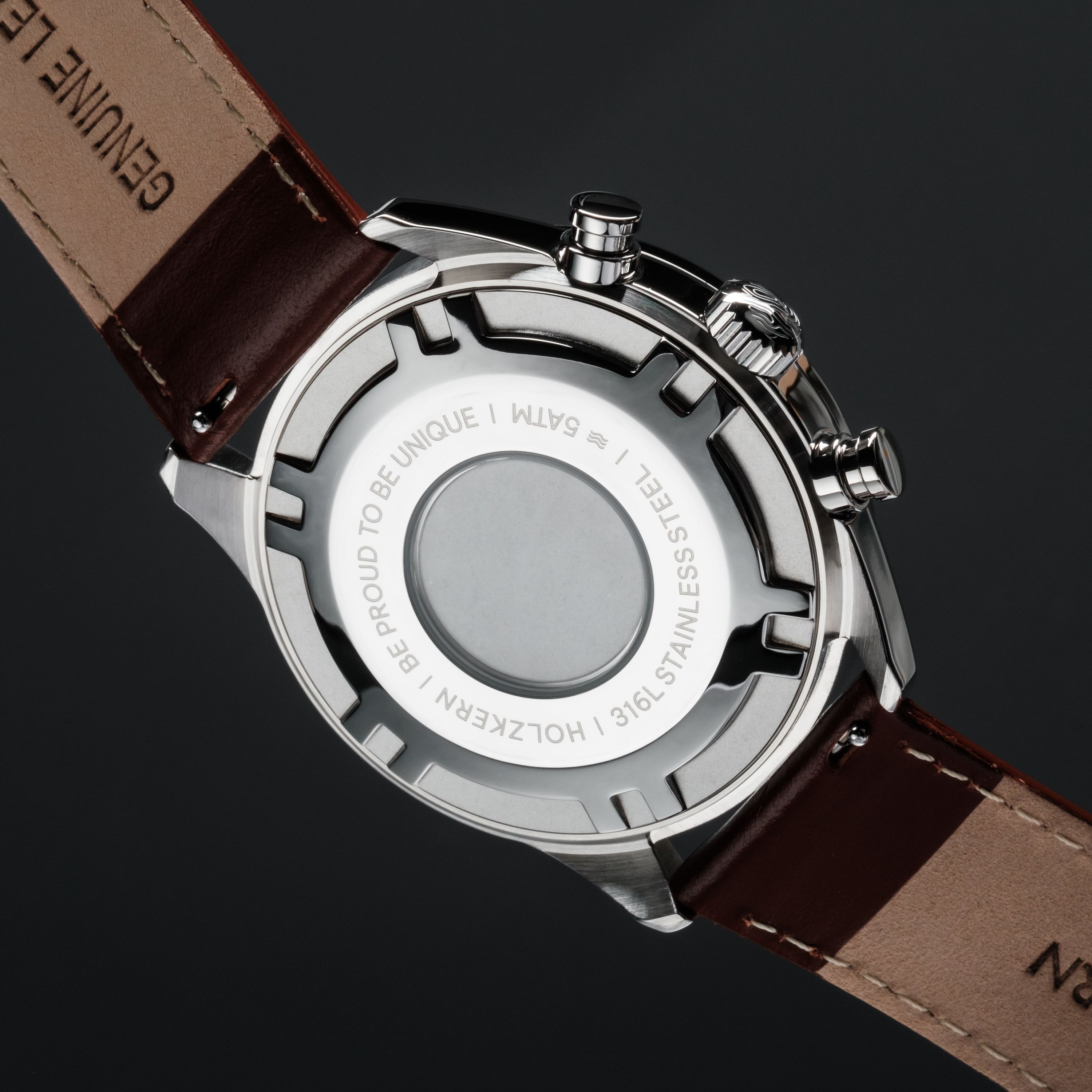 Spezielle Pigmente absorbieren UV- oder Kunstlicht und bringen das Zifferblatt zum Leuchten. So begleitet dich dein Stück Natur nicht nur durch deinen Tag, sondern ist dir auch in den Abend- und Nachtstunden ein treuer Begleiter, der genaues Ablesen der Zeit verspricht. Verbringe Zeit an hellen Orten und bringe dein Stück Natur bei Dunkelheit zum Strahlen!