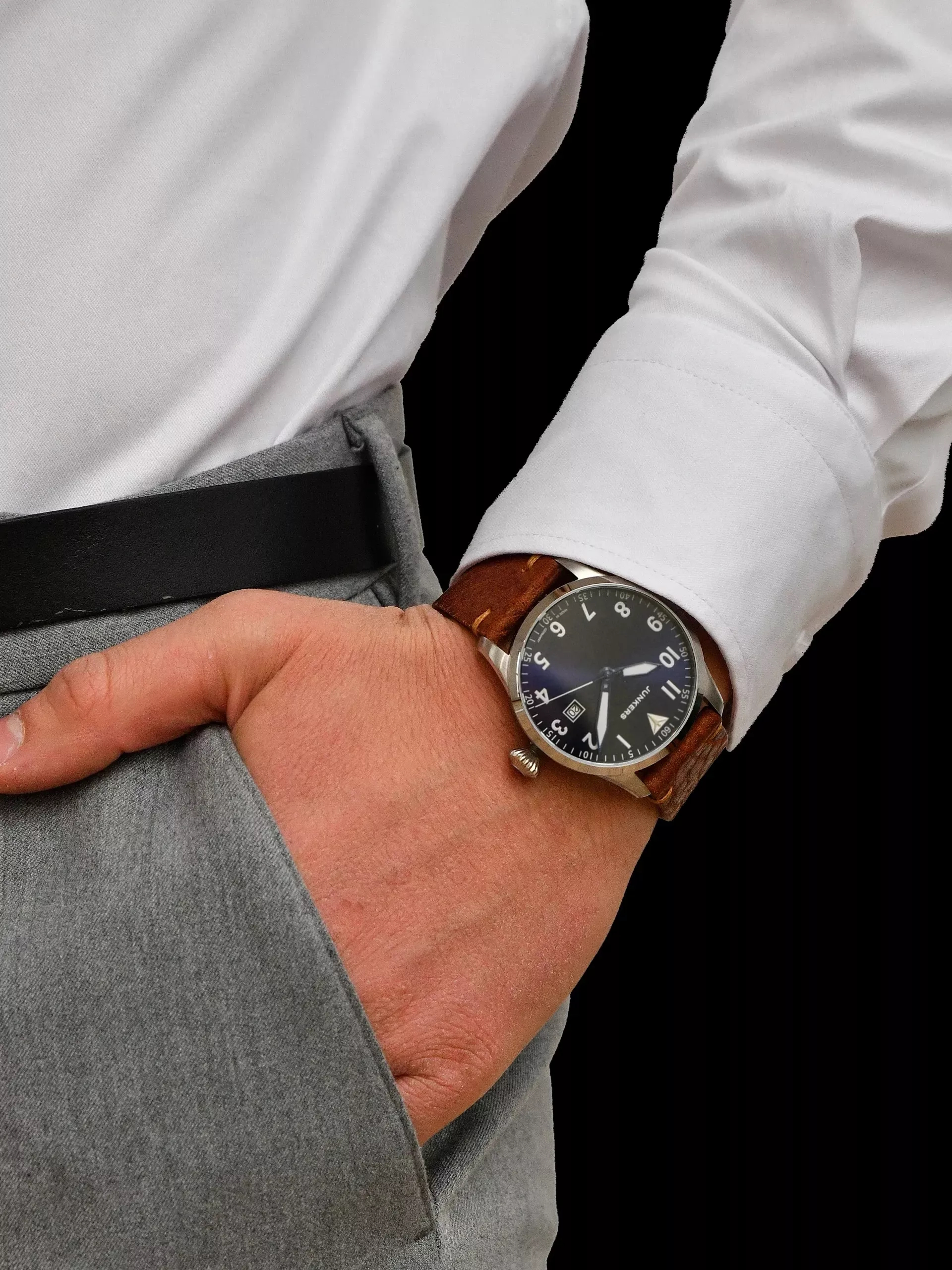 Schweizer ETA Uhrwerk Farbe Blau 42 mm Lederarmband Ref. 971.01.01