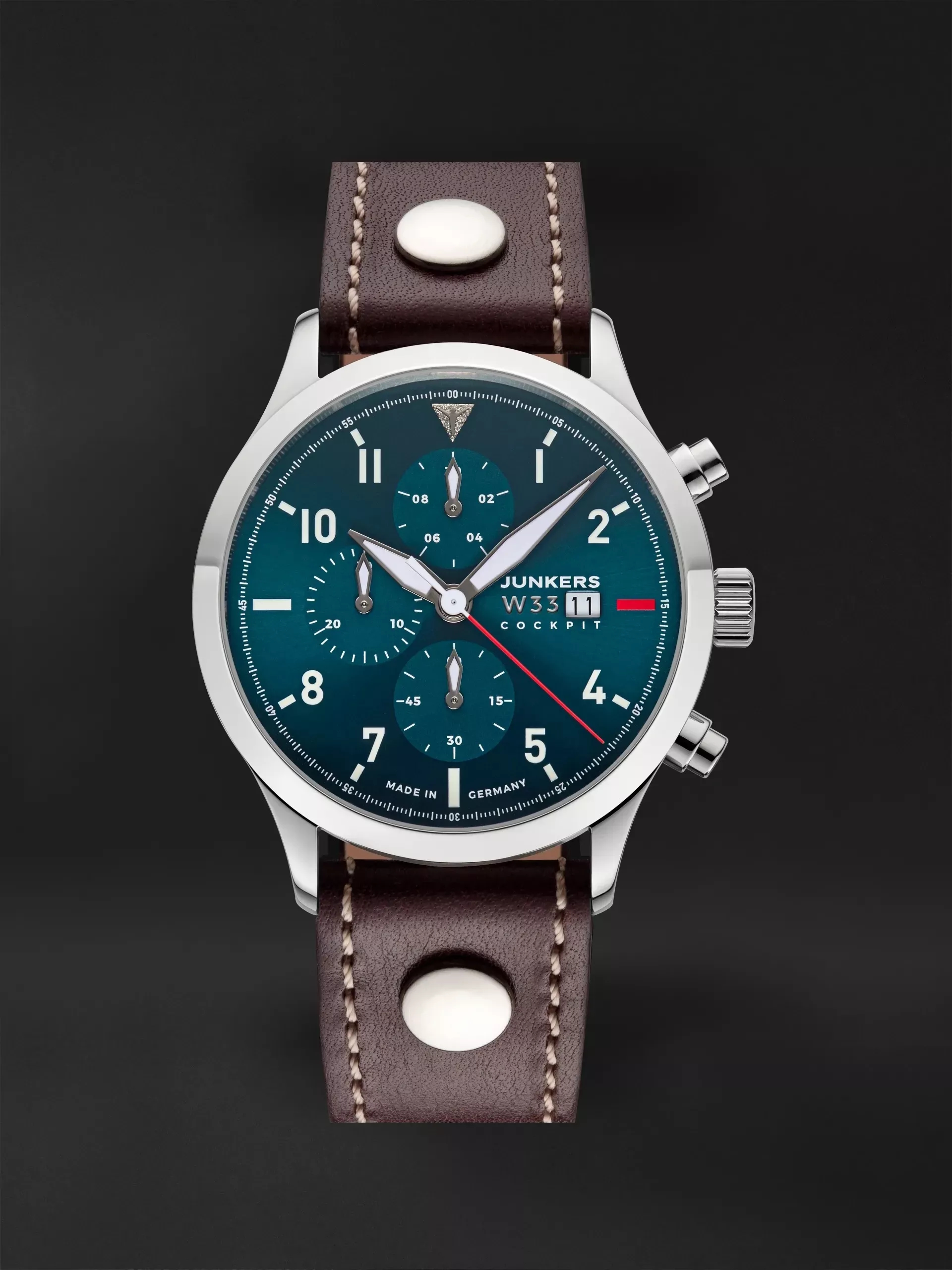 Die Serie „Junkers Cockpit“ zitiert mit Typografie und Zeigerform die klassischen Rundinstrumente der Flugzeuge jener Zeit. Alle Modelle sind Chronographen mit Leuchtmasse auf den Zeigern und bei den Modellen mit dunklem Zifferblatt zusätzlich auf den Indizes.