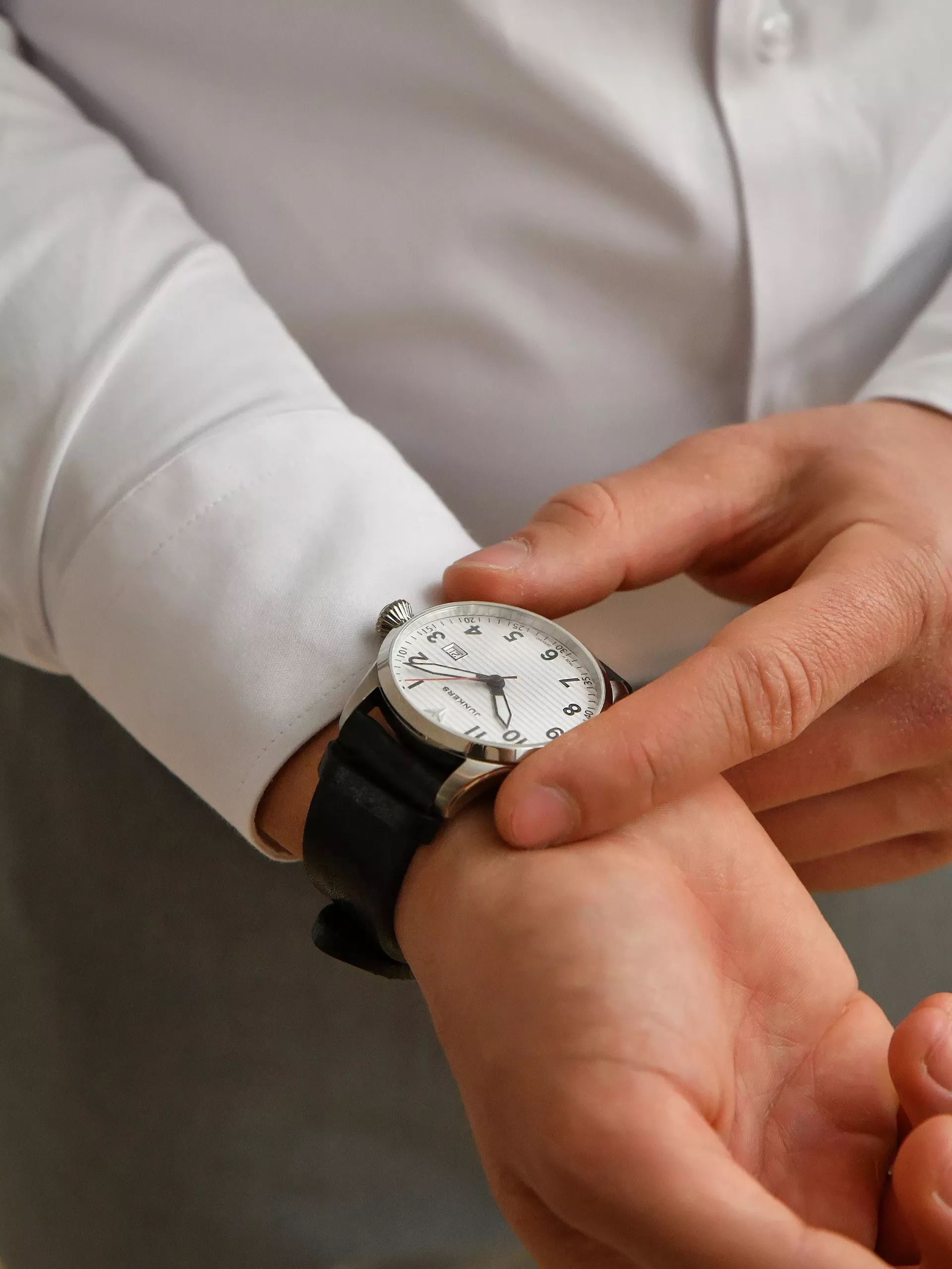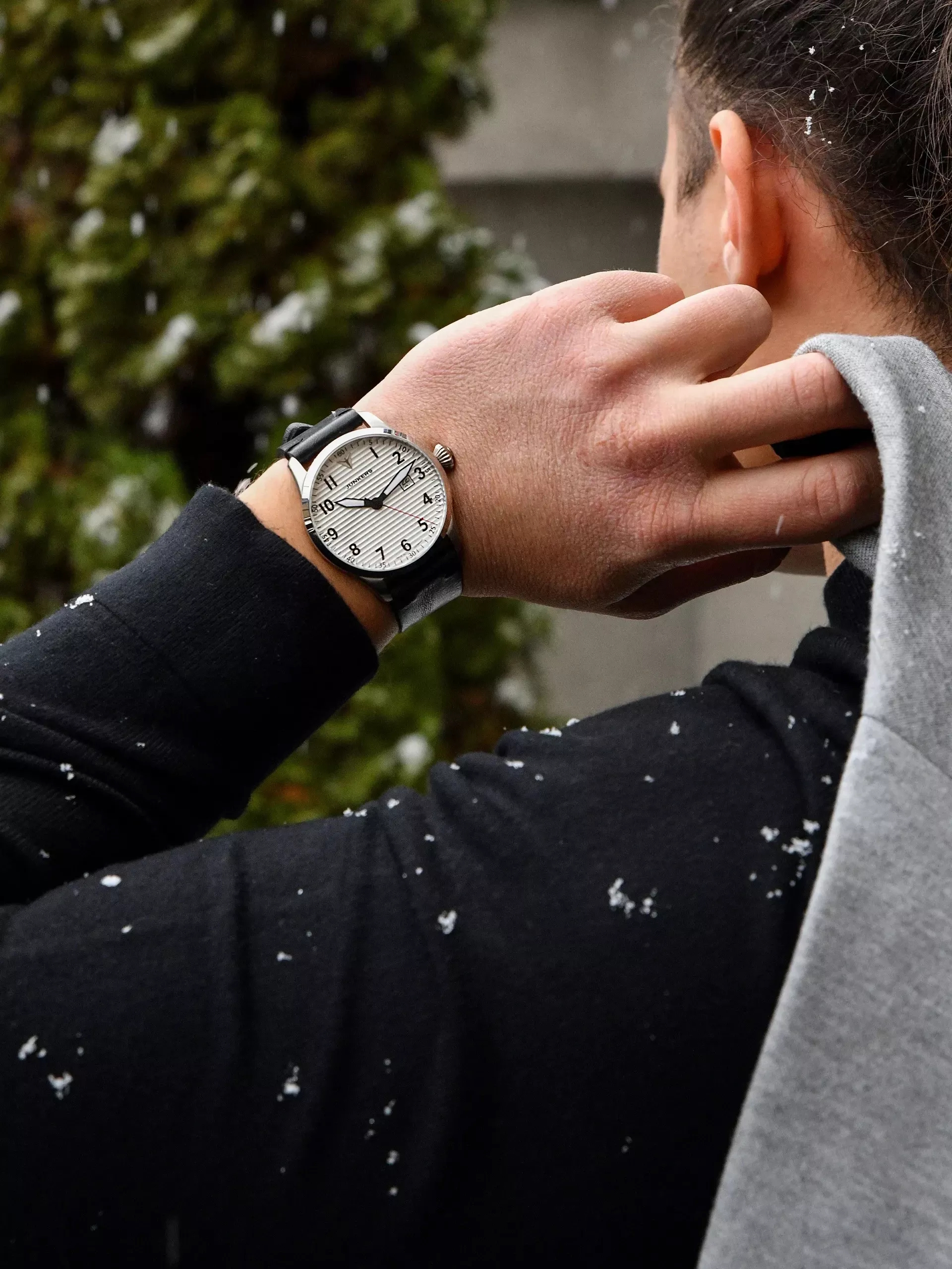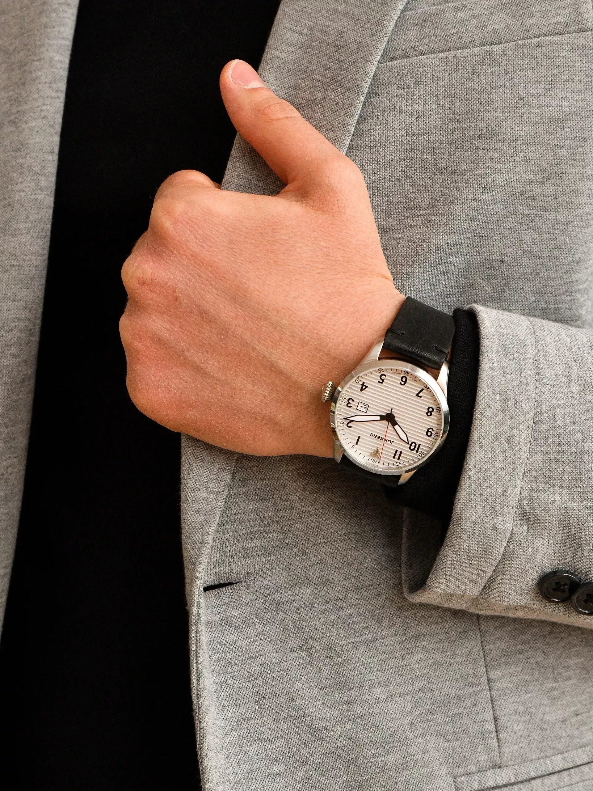 Schweizer ETA Uhrwerk Farbe Silber 42 mm Lederarmband Ref. 971.01.03