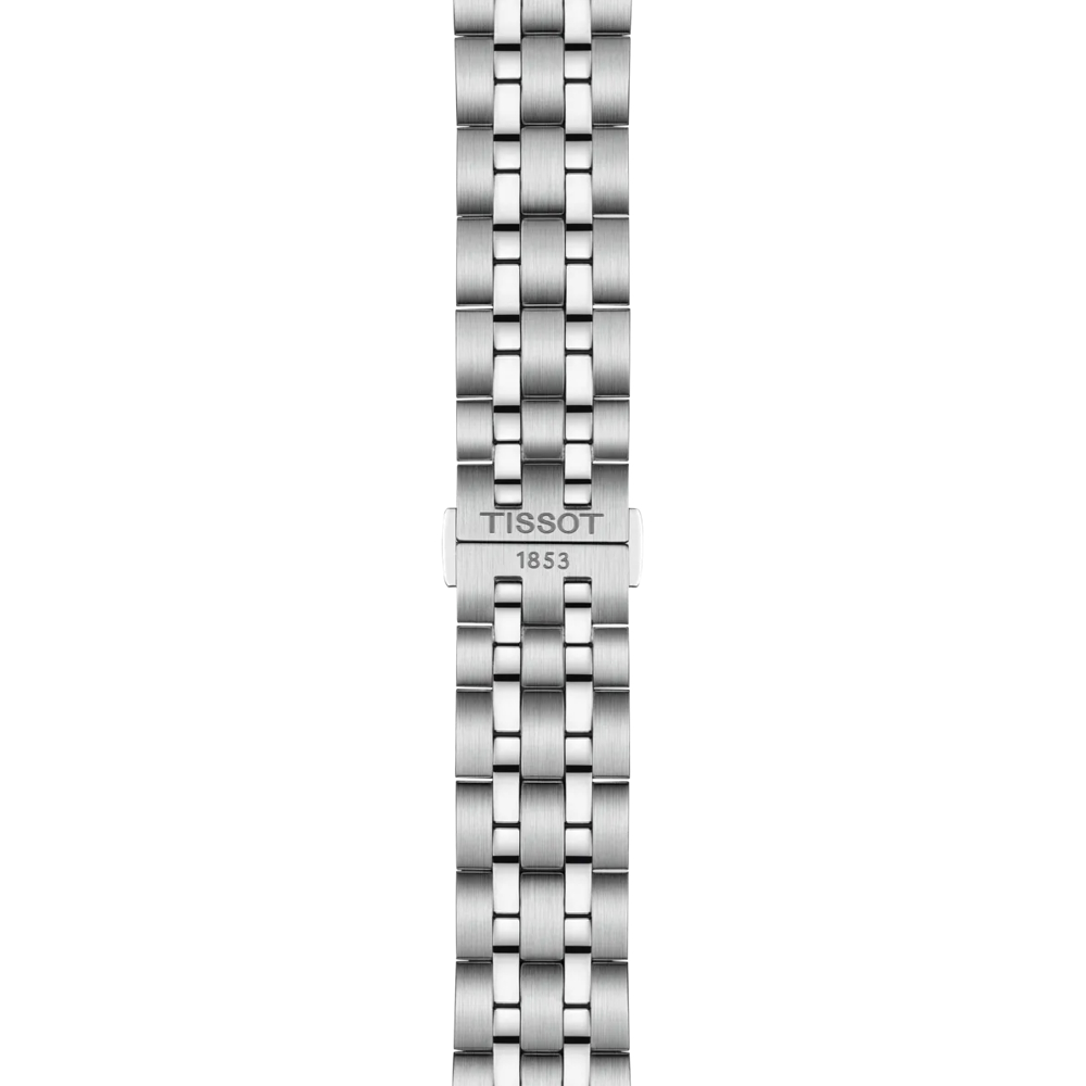 Dieses Tissot Classic Dream 40mm Modell besitzt ein schwarzes Zifferblatt mit Datumsanzeige, das sicher geschützt unter kratzfestem Saphirglas liegt. Das ebenso massive wie flexible 316L-Edelstahlarmband verfügt über eine Butterfly-Faltschließe mit Drückern. Dank Schnellwechselsystem lässt es sich einfach und werkzeuglos gegen ein anderes passendes Armband austauschen.