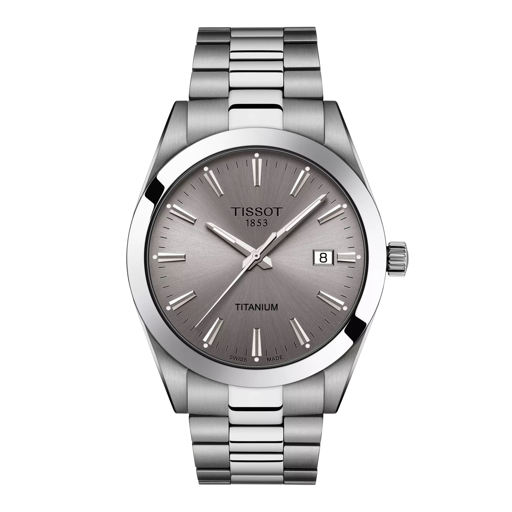 Die Tissot Gentleman ist das perfekte Accessoire für den Alltag und setzt gleichzeitig ein stilvolles Statement. Die klassisch elegante Uhr kommt mit einem Gehäusedurchmesser von 40 mm und passt perfekt zu jeder Art von Stil. Die satinierten und polierten Zeiger sowie Indizes runden das elegante Aussehen der Tissot Gentleman mit Swiss Made Quarzwerk und kratzfestem Saphirglas ab. Dieses Modell hat ein Titangehäuse sowie ein massives Titanarmband mit Butterflyfaltschließe mit Drückern sowie ein graues Zifferblatt mit Datumsanzeige.