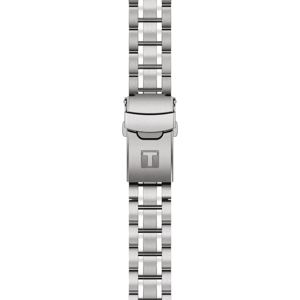 Dieses Tissot Seastar 1000 Quarz 38mm Chronograph Modell verfügt über einen schwarzen Mineralglas-Lünettenring sowie ein Zifferblatt mit Farbverlauf von Grau nach Schwarz, markanten Indizes und Datumsanzeige. Das Armband lässt sich dank Schnellwechselsystem werkzeuglos ganz einfach selbst austauschen.